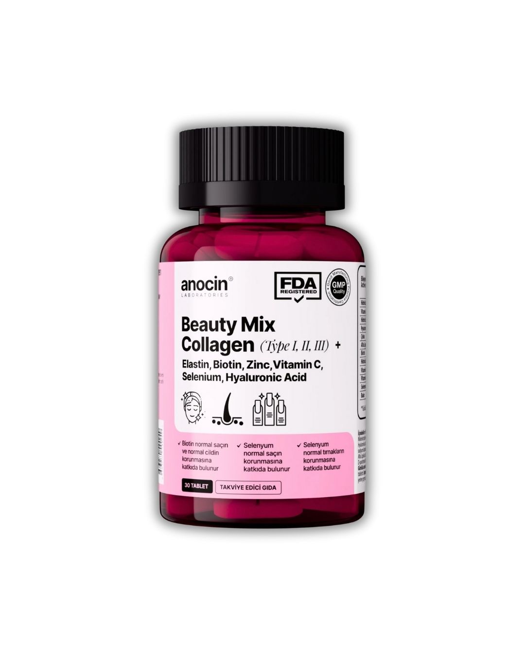 مکمل بیوتی میکس کلاژن آنوسین | Anocin ــ ترکیب کامل کلاژن نوع ۱، ۲، ۳ با بیوتین، زینک و هیالورونیک اسید