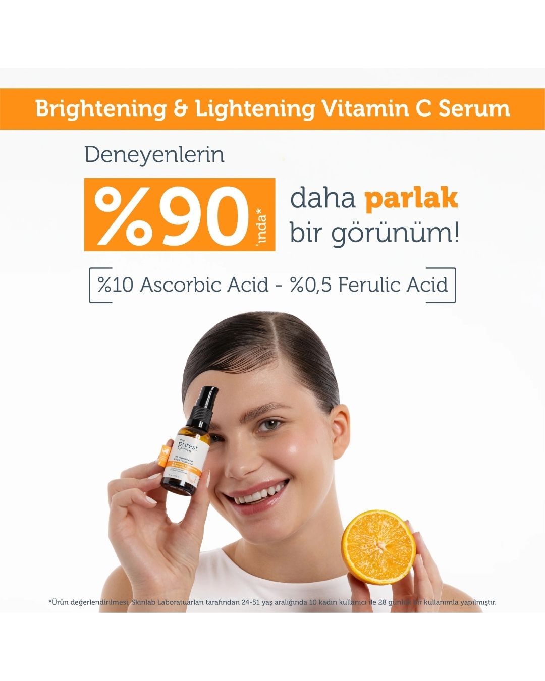 حاوی 10% آسکوربیک اسید (قویترین شکل ویتامین C) تقویت شده با 0.5% فرولیک اسید برای تثبیت فرمول و افزایش محافظت در برابر رادیکالهای آزاد.
