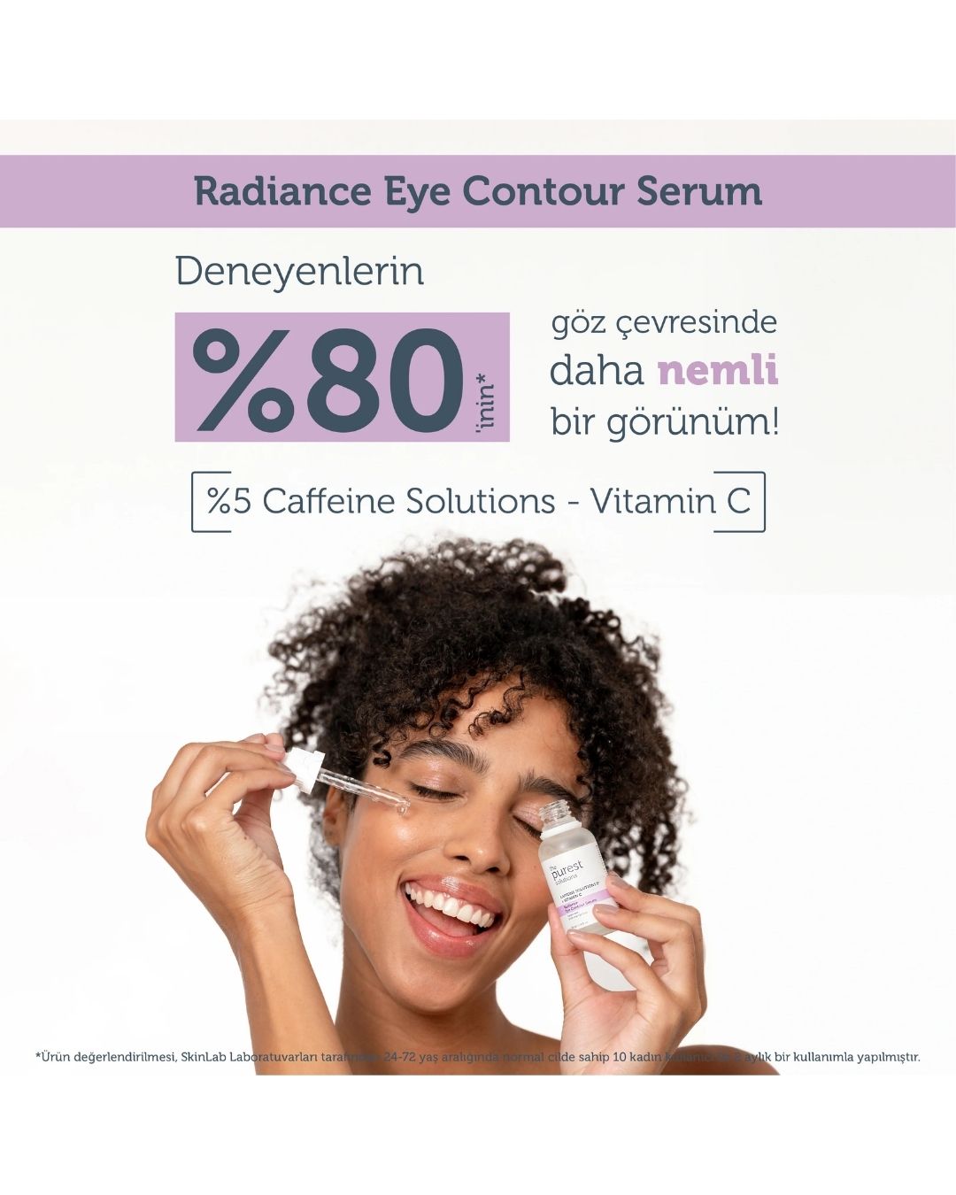 حاوی 5% کافئین برای کاهش تجمع مایعات و پف و ویتامین C برای روشن کردن لکهای تیره زیر چشم.