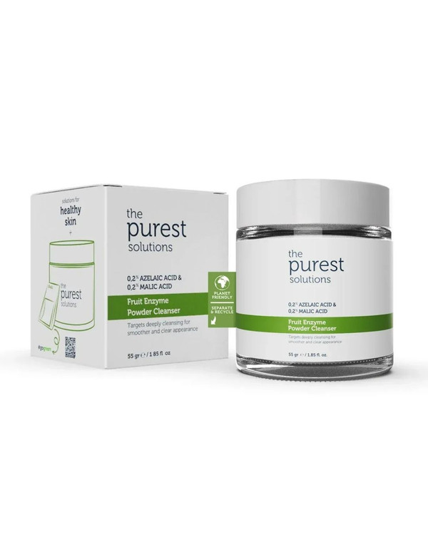 پودر پاککننده آنزیمی The Purest Solutions، تجربهای متفاوت در پاکسازی و لایهبرداری ملایم پوست است. این فرمول پودری پس از ترکیب با آب، فعال شده و کف میکند. آنزیمهای میوه به همراه مالیک اسید (AHA)، سلولهای مرده سطح پوست را به آرامی حذف کرده و کدری را برطرف میسازند. حضور 0.2% آزلائیک اسید و نیاسینامید به روشن شدن تدریجی لکها و کاهش قرمزی و التهاب کمک میکند. این پاککننده با فرمولاسیون ملایم خود، شفافیت و درخشندگی پوست شما را در استفاده روزانه، بدون ایجاد خشکی، بازیابی میکند.