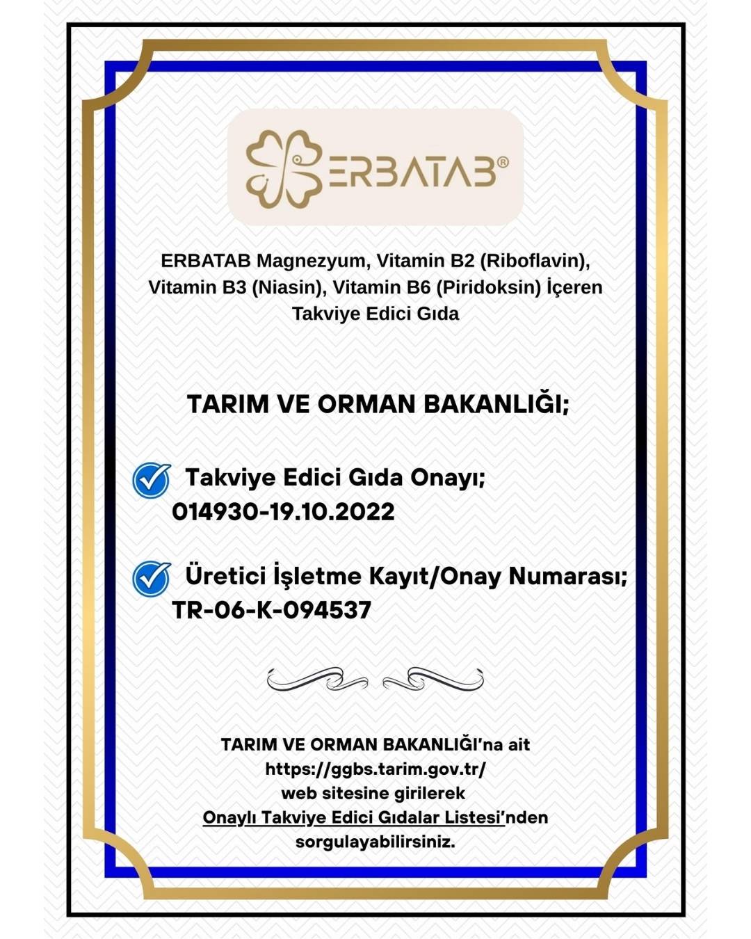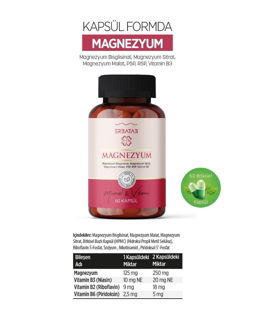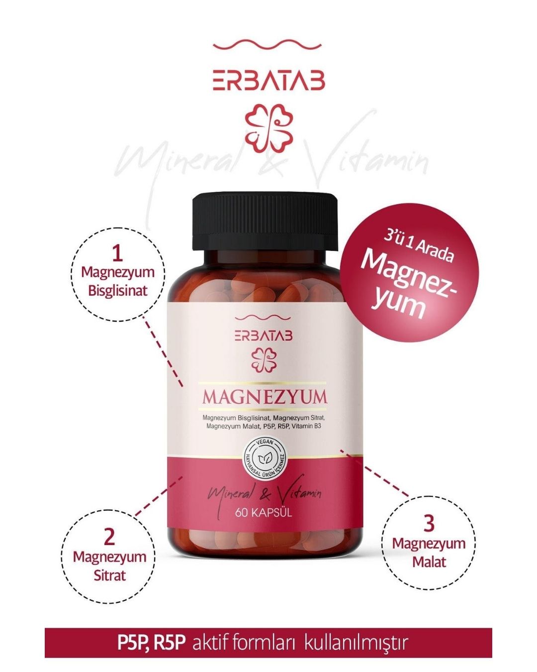 📖 توضیحات منیزیم ۳گانه با ویتامینهای B2، B3 و B6 ارباتاب | Erbatab ـ 60 عددی