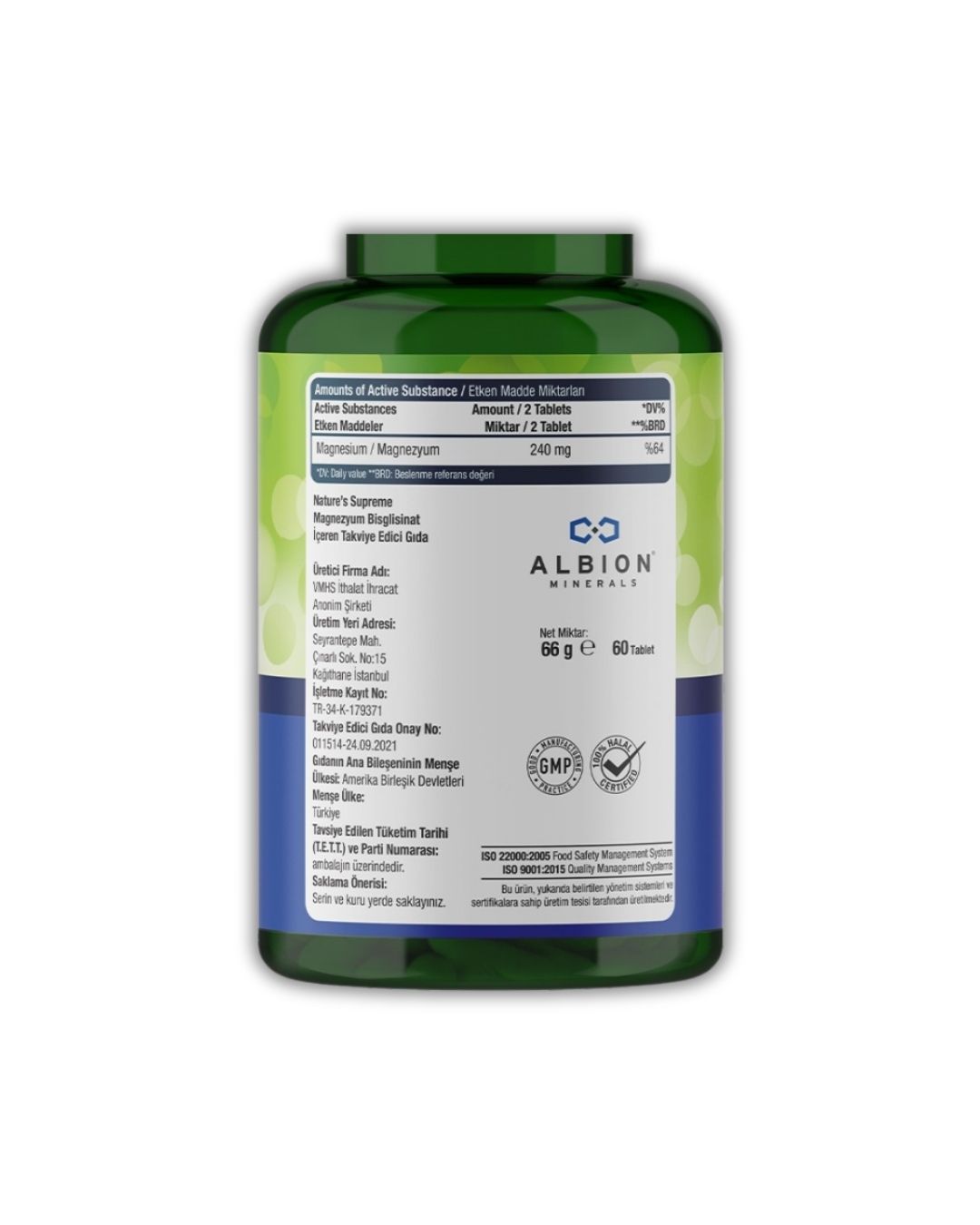 منیزیم (به فرم بیسگلیسینات) ۱۲۰ میلیگرم منیزیم المنتال در هر کپسول