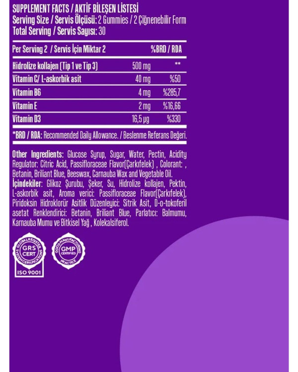 کلاژن هیدرولیز شده نوع ۱ و ۳ - ویتامین C - ویتامین B6 - ویتامین D3