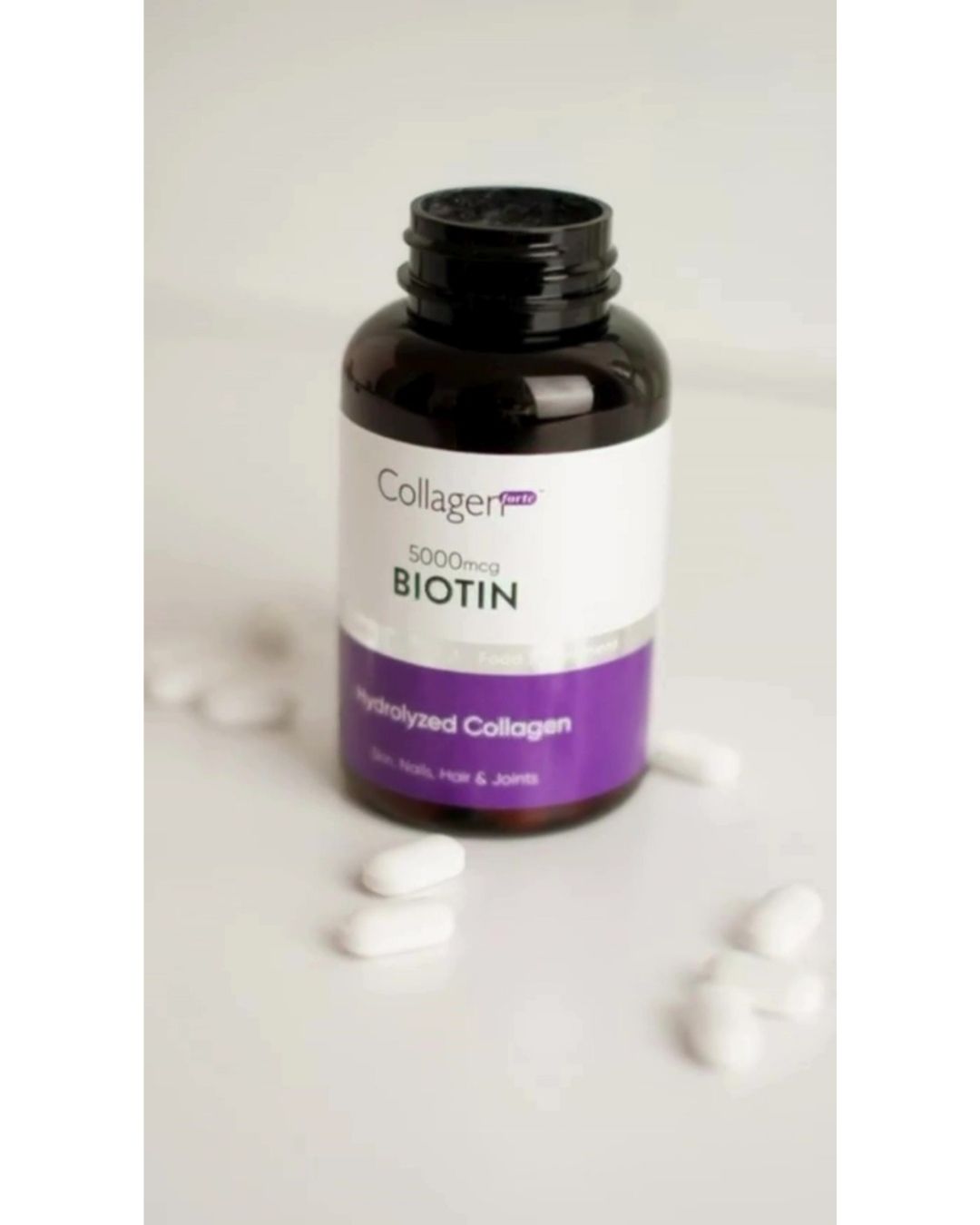 مکمل Collagen Forte Platinum Biotin + Collagen ترکیبی قدرتمند از بیوتین با دوز بالا و کلاژن هیدرولیزه برای حمایت از سلامت مو، پوست و ناخن است.