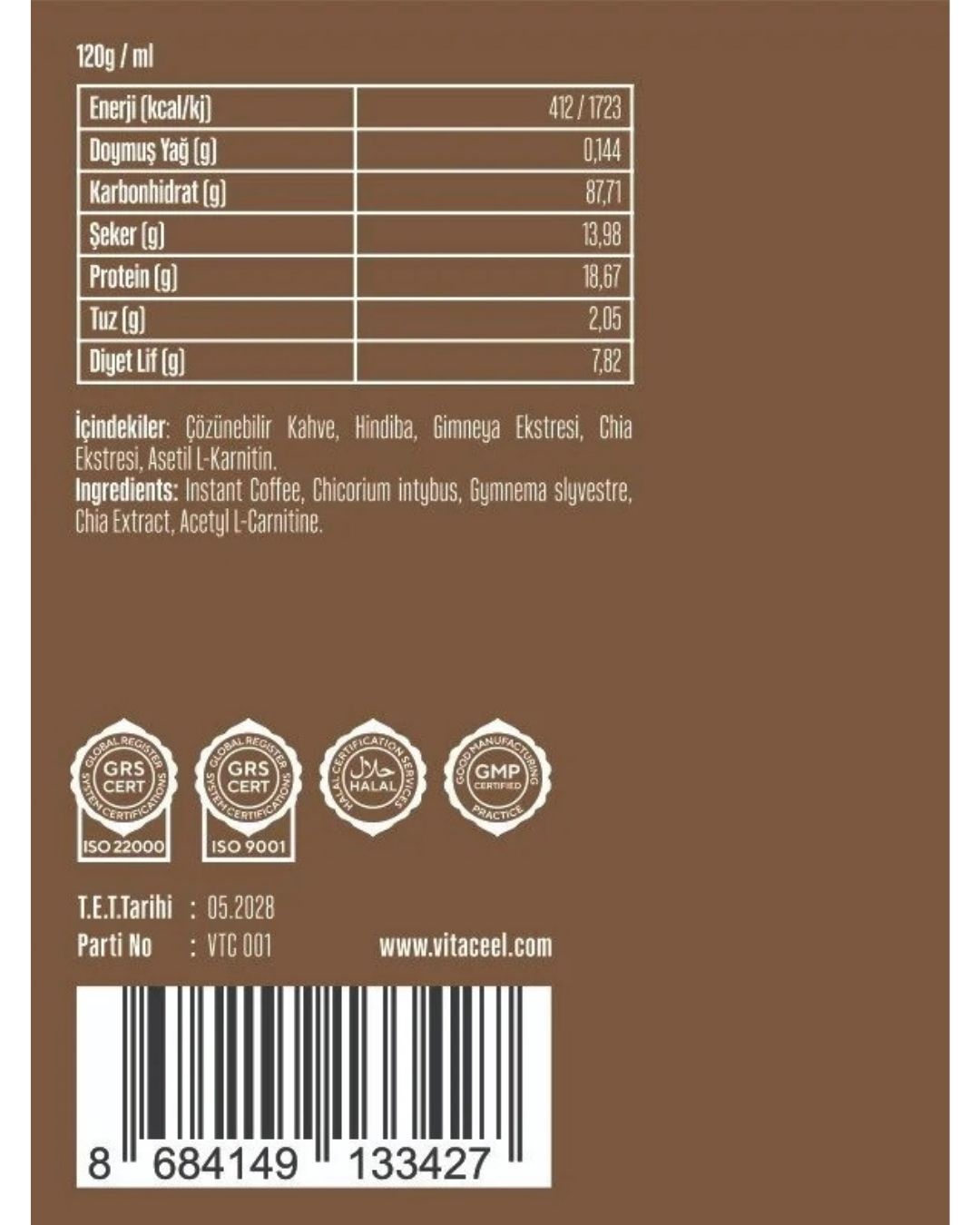 جایگزین مناسب برای قهوه معمولی، دارای دوز مؤثر L-کارنیتین برای تسریع چربیسوزی، حاوی جیمنما برای کاهش میل به شیرینیجات، طعم ملایم و دلنشین . دارای تاییدیه های ISO و GMP